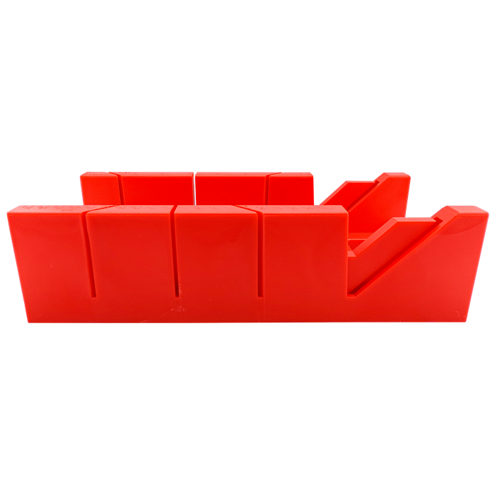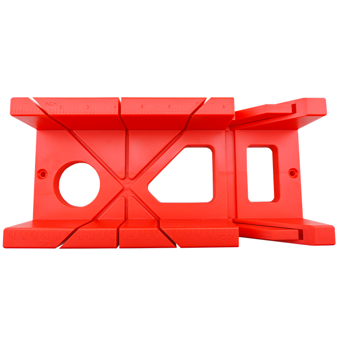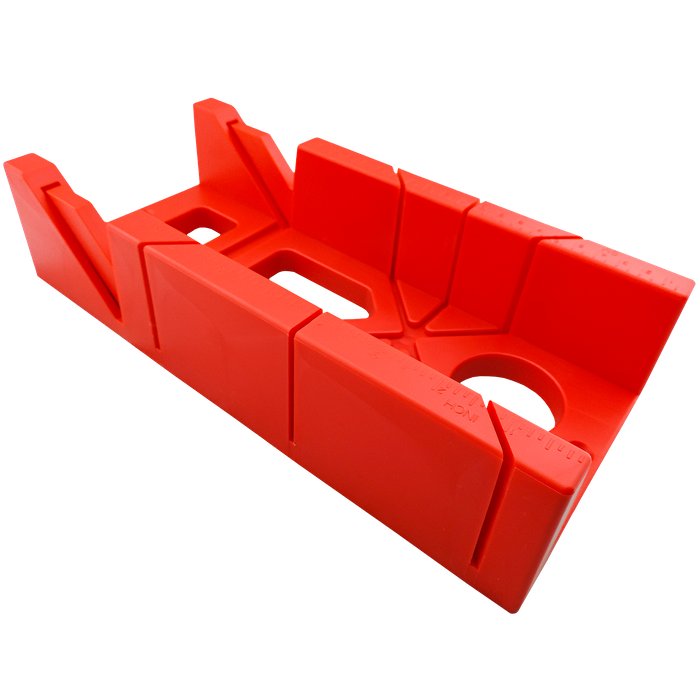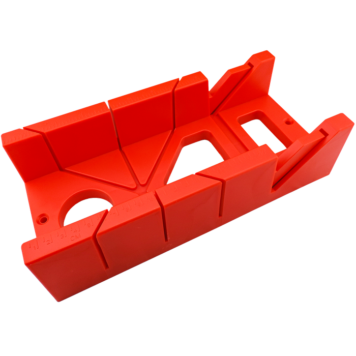 This handy little mitre box is the next best accessory you need for guiding and making precise cuts in woodworking. Constructed of durable and tough ABS plastic, this box has placements for Mitre cuts at 90 degrees and 45 degrees to the left and right, plus bevel cuts at 45 degrees. It features both imperial and metric measurements with CMs and inches written on either side of the box, and also has two screw holes on either end of the box to secure it to your workbench. This nifty accessory is perfect for those who still love doing things by hand and don't need a power tool to measure and cut their angles.