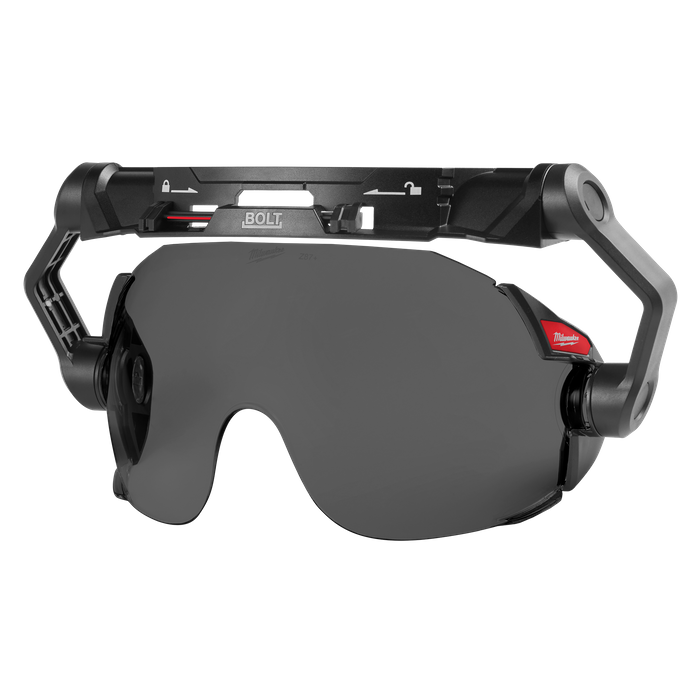 The Milwaukee BOLT Tinted Visor is designed to provide you with the best fit and easy headlamp use. The visor pivots and adjusts to provide a comfortable and secure fit for a wide variety of face shapes. Each visor is treated with a fog-free interior coating and an anti-scratch exterior hard coating for longer product lifetimes. This visor is part of the BOLT Accessory System which allows our users to secure accessories simultaneously.Our BOLT Tinted Visor is certified to AS/NZS 1337.1:2010.