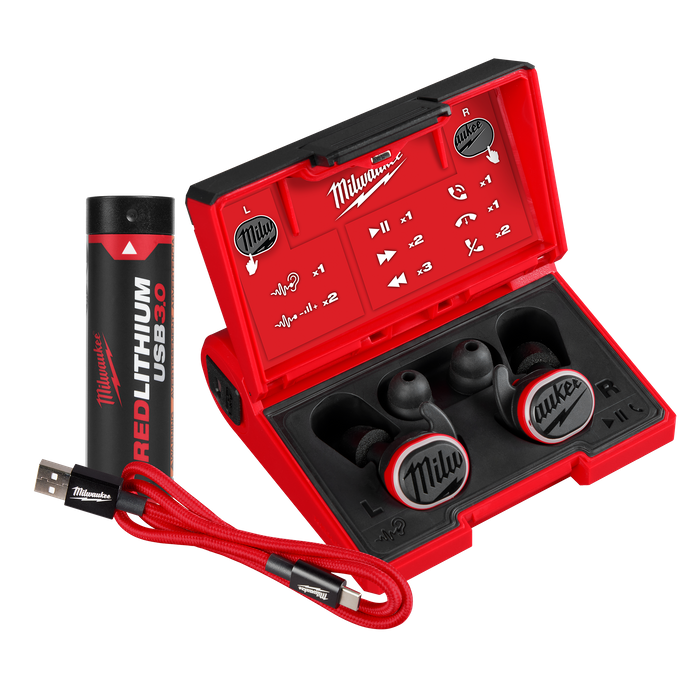 - Milwaukee REDLITHIUM USB Bluetooth In-Ear Headphones 3.0Ah