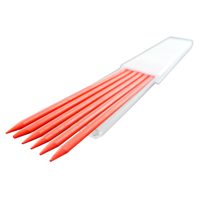 The ToolShed's Construction Pencil Refill Graphite 6 pack is a reliable solution for professionals in construction and carpentry. These graphite refills, in a bold red colour, are designed to mark most surfaces in all weather conditions. The 2.8mm size lead is a generic fit for most Construction pencils, ensuring compatibility and ease of use. Offered in a handy 6 pack, this will supply your marking refill needs for a while. Housed in a hard plastic protective case, this ensures safekeeping and protection against transportation and working hazards.