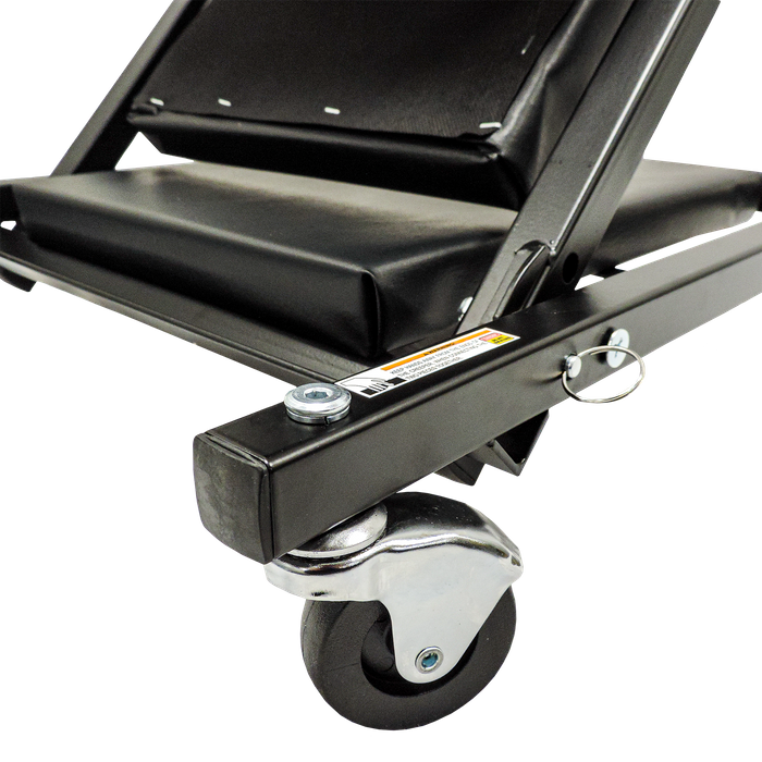 This tool is designed to withstand the demands of a busy workshop, featuring an easy-to-clean vinyl cover that repels stains. With six rubber tires and zinc-coated casters, moving around your workspace is effortless. Whether you're working on waist-level tasks or taking a break, the folding stool offers practicality and comfort for all your needs. Upgrade your workspace with this reliable and versatile tool today.