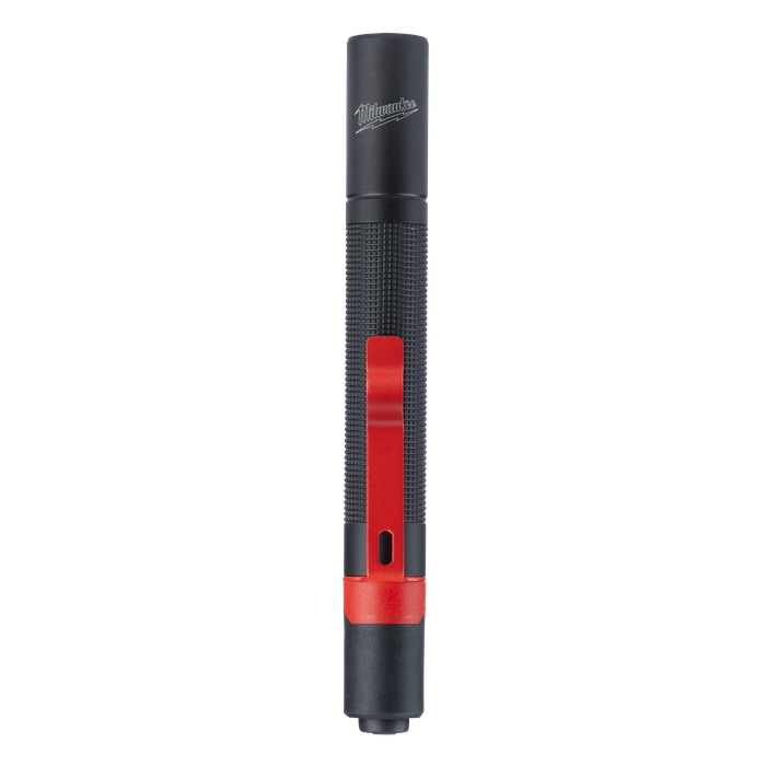PERFORMS, SURVIVES, EASIER INSPECTIONS. The MILWAUKEE Penlight delivers 100 lumens of TRUEVIEW High Definition output. Illuminate more area with brighter, natural light for the truest colors and details. A protective rubber bite zone lets users safely direct light while performing two handed tasks. Waterproof and dust proof, this penlight is sealed to withstand the toughest jobsite conditions. The Penlight’s 6000 series aircraft aluminum body and lens are impact and corrosion resistant. Use the Penlight’s metal clip to attach to any chest or pant pocket for quick, everyday use.