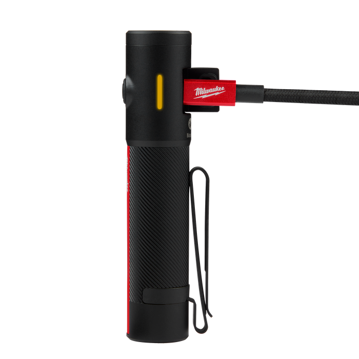 The Internal Rechargeable Flashlight 500 Lumen provides the flexibiltiy to work hands-free and delivers up to 500 lumens of TRUEVIEW™ High Definition Output, whilst maintaining a compact size designed to fit in your pocket and carry at all times.The Rechargeable Flashlight provides maximum versatility, with the ability to quickly switch from handheld to hands-free with the magnetic base and reversible clip for easy attachment to the brim of your hat. With three output modes, including a low light mode, the Rechargeable Flashlight provides maximum performance or runtime with up to 40 hours for any task. Stay ready, easily from job-to-job with in-built USB charging and an on-board battery indicator. This USB rechargeable flashlight is built to survive the toughest jobsite conditions with an IP67 rating and can withstand impacts up to 4 metres. The Rechargeable Flashlight's built-in battery gives you optimal performance and rechargeable capabilities.