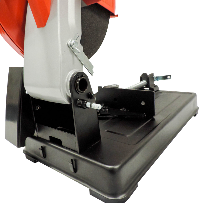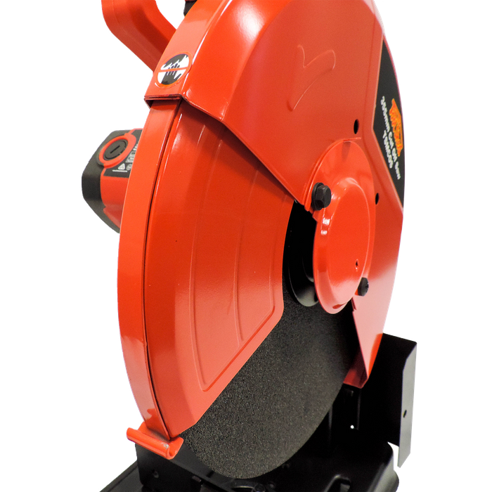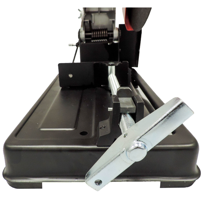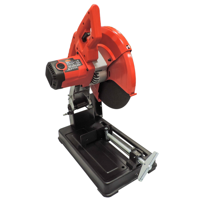 Introducing our high-performance metal cut off saw, the perfect tool for precision cutting through various types of metals. With its durable construction and advanced features, this saw is a must-have for any metalworking professional. Equipped with a powerful 2200W motor and a large cutting capacity, this saw can handle a wide range of metal cutting tasks with ease. Its adjustable cutting angle allows for versatile cutting options, making it suitable for a range of projects. The saw's solid base and stationary vice ensures stability during use, while its ergonomic design provides comfortable handling and minimises fatigue. A simple to use locking pin lets you lock the saw down to make for much easier storage. Whether you're cutting through pipes, tubes, or solid metal bars, this cut off saw delivers reliable results every time.