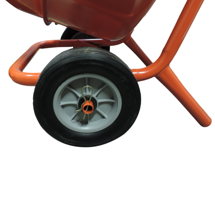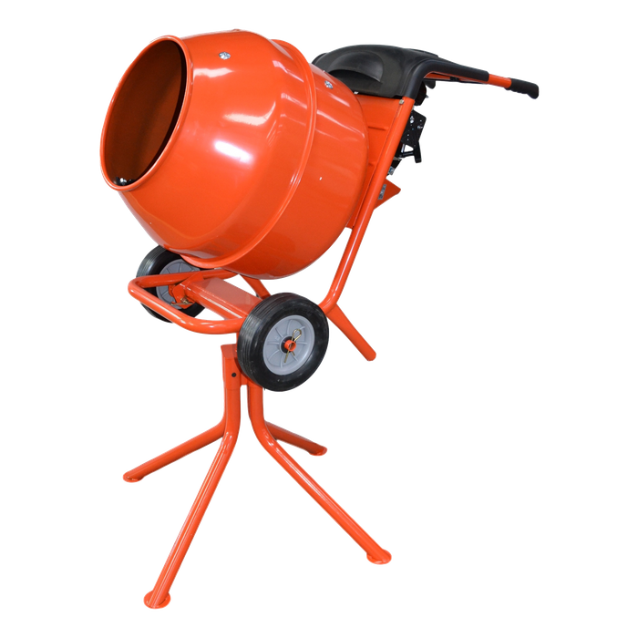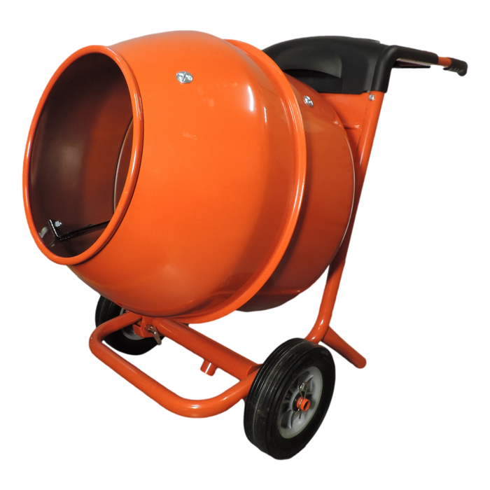 With a respectable 140L bowl, this machine comes complete with a stand that the mixer is easily removed from. When on the ground the mixer has heavy duty solid rubber wheels allowing you to cart a full load around and has a front bar ideal for pivoting off when pouring concrete.