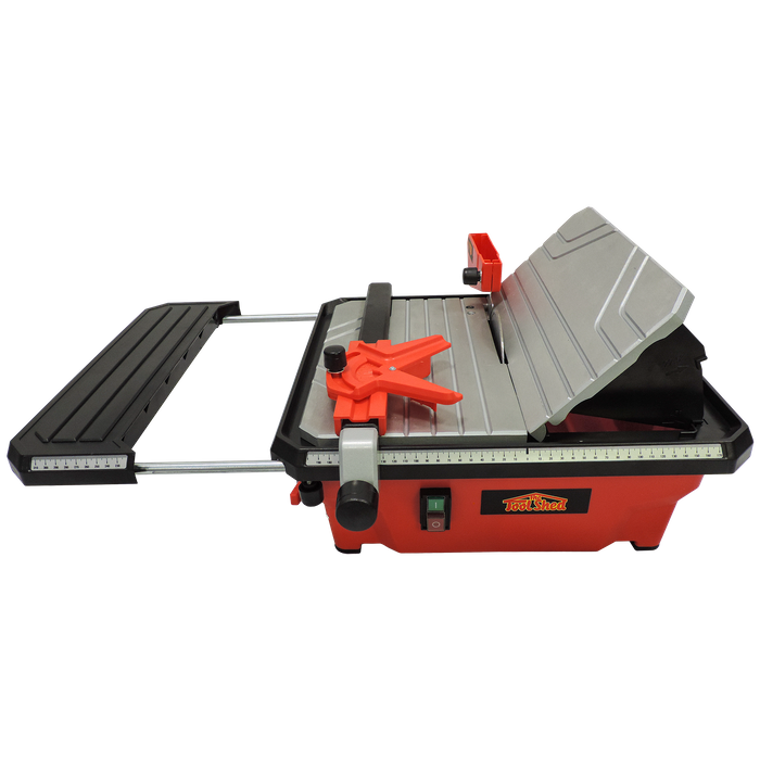 For added flexibility, the ToolShed Tile Cutter includes a 45° Vertical Fence with stops for a 22.5° angle, providing precise cutting options. One standout feature is the extension table that expands from 580mm to an impressive 720mm, offering ample working space for various tile sizes. The built-in water reservoir serves a dual purpose, cooling the blade for extended durability and assisting in dust dampening for a cleaner, healthier work environment.