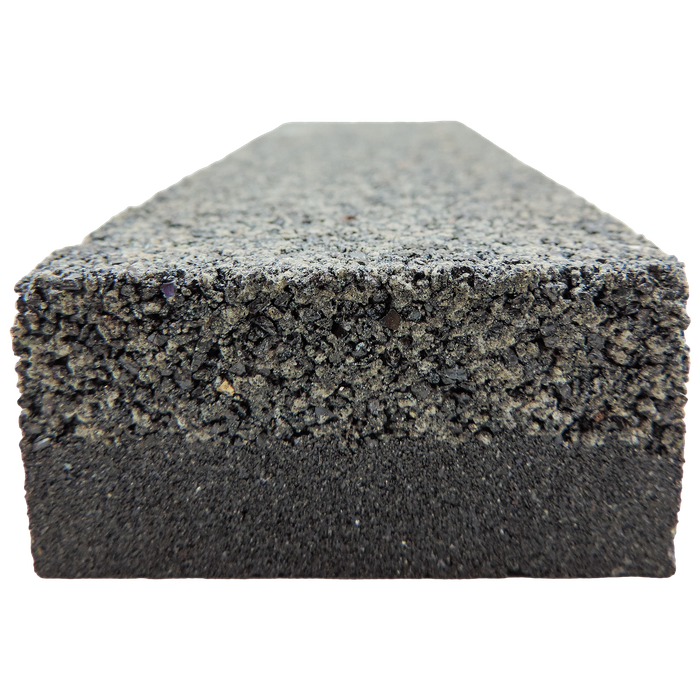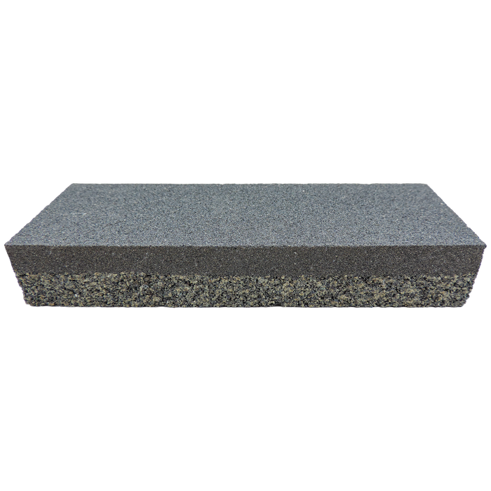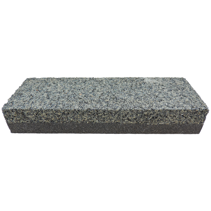 The grindstone is graded by pressing the fine side of the Grading Stone onto the grinding wheel, transforming it into a fine grit stone (approximately 1000 grit). Using the coarser side of the grader on the grindstone restores the smoothed surface back to its original condition (220 grit).