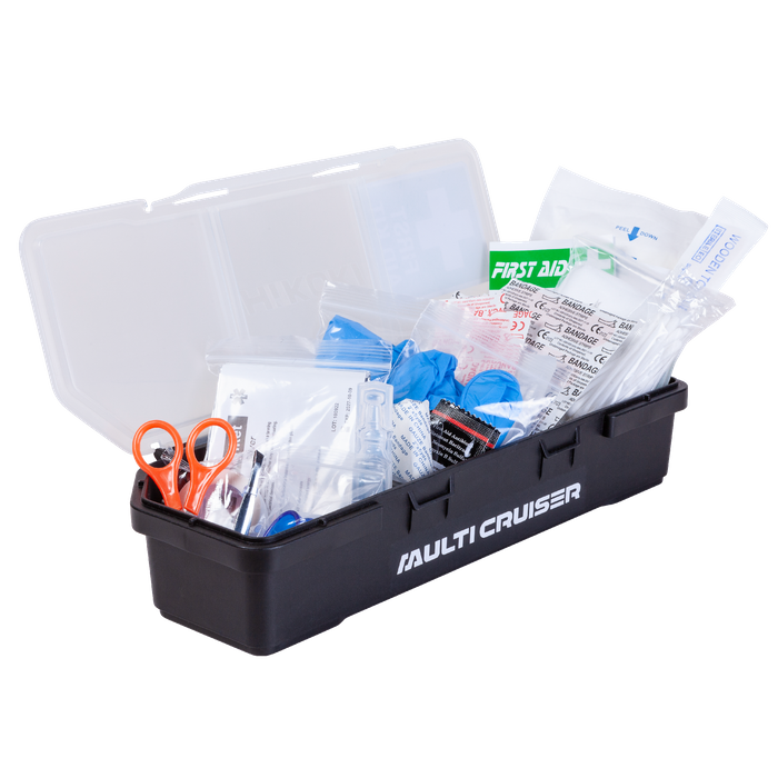 MULTI CRUISER First Aid Kit features all of your key essentials first aid items including items to clean, treat, protect and tools such as tweezers, stainless steel scissors and thermal rescue blanket etc – this handy kit is perfect to have on the worksite or in your work vehicle.
