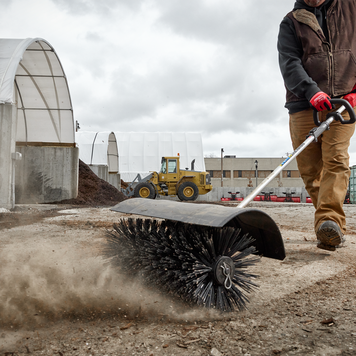 The M18 FUEL™ QUIK-LOK™ Bristle Brush Attachment is powered by the M18 FUEL™ Outdoor Power Head and is compatible with the M18 FUEL™ QUIK-LOK™ Attachment System. This attachment's durable bristles are designed for removing debris such as mulch and dirt from hard surfaces without disruption to the material beneath. The debris guard provides users maximum material containment as the 585 mm clearing width lets users maximise their productivity, clearing areas in fewer passes. QUIK-LOK™ Attachments feature protected drive shafts for greater durability against drops and storage elements. The Bristle Brush Attachment also features optimised gearing to manage the cordless M18 FUEL™ Outdoor Power Head RPM output specifically geared for this attachment.