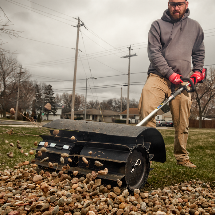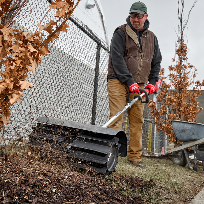 The M18 FUEL™ QUIK-LOK™ Rubber Broom Attachment is powered by the M18 FUEL™ Outdoor Power Head and is compatible with the M18 FUEL™ QUIK-LOK™ attachment System. This attachment's durable rubber paddles are designed for removing debris such as mulch and gravel from grass without disruption to the material beneath. The debris guard provides users maximum material containment as the 585 mm clearing width lets users maximise their productivity, clearing areas in fewer passes. QUIK-LOK™ Attachments feature protected drive shafts for greater durability against drops and storage elements. The Rubber Broom Attachment also features optimised gearing to manage the cordless M18 FUEL™ Outdoor Power Head RPM output, specifically geared for this attachment.