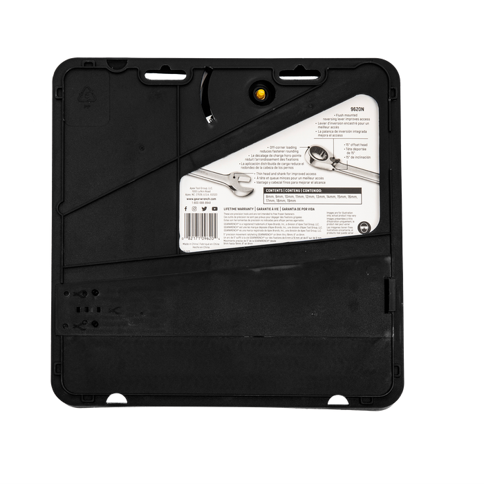 The reversible ratcheting combination wrenches from GEARWRENCH are a staple for every tool box. The flush-mounted reversing lever allows the user to switch motion left to right without needing to remove the wrench from the fastener increasing productivity. The 15° offset on the ratcheting box end allows for greater knuckle clearance and safer access to the fasteners. The ratcheting box end is designed to need as little as 5° to move fasteners versus 30° for standard wrenches and features off-corner loading for a better grip on the fastener and reduces fastener rounding. The wrenches are made from strong alloy steel with a bright, full polish chrome finish.