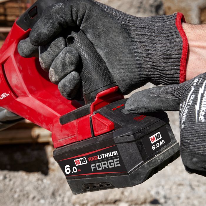 The M18™ REDLITHIUM™ FORGE™ 6.0Ah Battery delivers high power in a smaller, more ergonomic size and the longest life vs REDLITHIUM™ batteries. REDLITHIUM™ FORGE™ are Milwaukee’s most powerful, fastest charging, and longest-life batteries. The optimised combination of size, weight, and increased power provides the best solution for power-demanding overhead work and tight work areas. When paired with the M18™ Dual Bay Super Charger, The REDLITHIUM™ FORGE™ 6.0Ah is the fastest charging battery pack within its class on M18™, charging in just 15 minutes to 80% and 25 minutes to 100%. The M18FB6 has the longest life, the most recharges, and the best performance over the life of the battery. This solution is designed with resistant housing for increased protection against exposure to common oils, greases, and solvents. Built-in REDLINK™ PLUS Intelligence protects the battery from overloads, preventing you from damaging your cordless power tools in heavy-duty situations. The REDLITHIUM™ FORGE™ 6.0Ah battery is fully compatible with 250+ M18™ solutions.