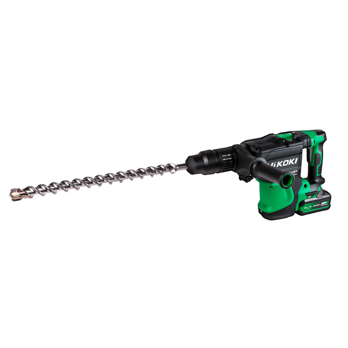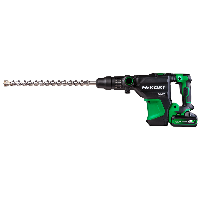 Brushless SDS-MAX Rotary Hammer brings superior power and performance even in the most extreme work environments! Featuring a huge 9.2J impact energy rating and powered by a single 1440W MULTI VOLT™ battery, you can have confidence that this Rotary Hammer can tackle the most demanding applications in the most remote work sites. Get 1440W worth of cordless performance with HiKOKI’s MULTI VOLT™ 36V 40mm SDS-MAX Rotary Hammer. This model is powered by MULTI VOLT™ Batteries – To find out more about MULTI VOLT™ click here . Batteries and chargers sold separately.