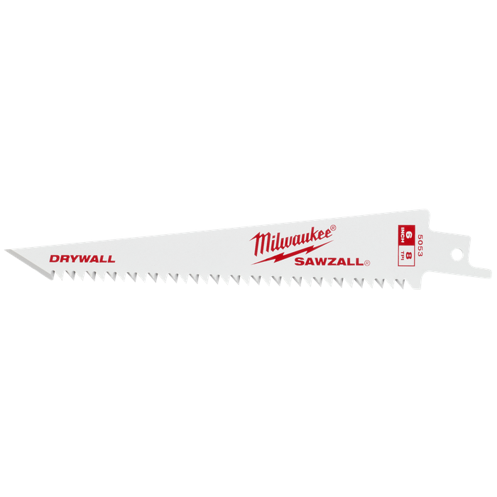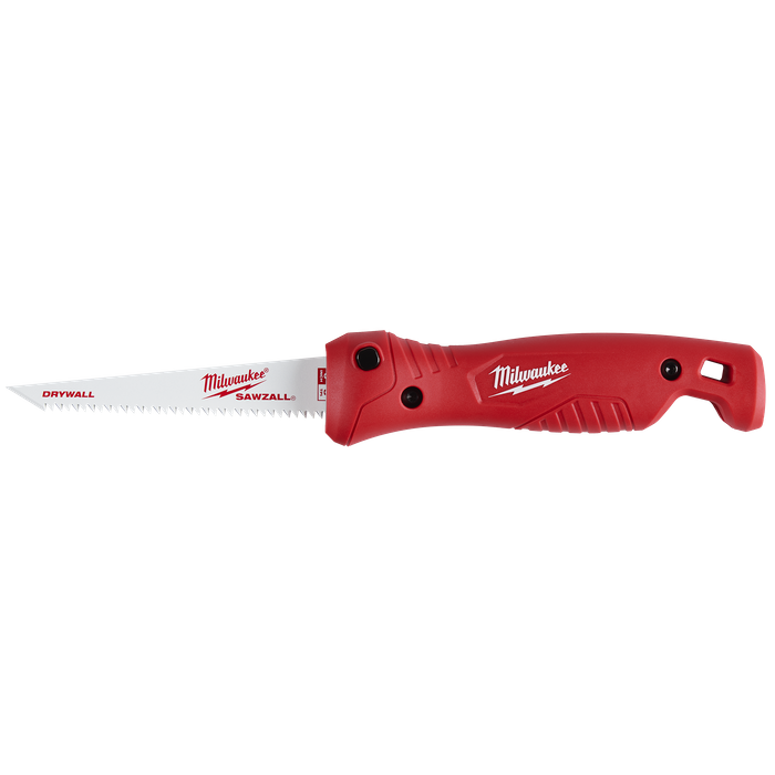 Milwaukee® Folding Jab Saw features our new Sawzall Drywall Blade. The 6" 8TPI Sawzall Drywall Blade features a large piercing tip for easy plunge cuts and fleam ground teeth for smooth cuts. The handle fits all 6" Sawzall™ blades for quick cutting into multiple materials and the blade will easily fold into the handle to avoid piercing through tool pouches and bags. The Folding Jab Saw is complete with ribbed indentions to increase handle grip. The folding jab saw also features a slide lock design offers the fastest blade change to increase productivity on the jobsite and a lanyard hole for convenient tethering.