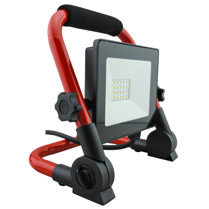 The Worklight features 24 SMD LEDs protected behind hardened, tempered glass, ensuring durability and reliable performance in demanding environments. Constructed of durable aluminium and heavy-duty plastic materials, it withstands the rigours of the worksite with ease. With an Ingress Protection rating of IP65, it offers protection against dust and water ingress, further enhancing its durability and longevity. Illuminate your workspace with confidence using the ToolShed LED Worklight 20W.