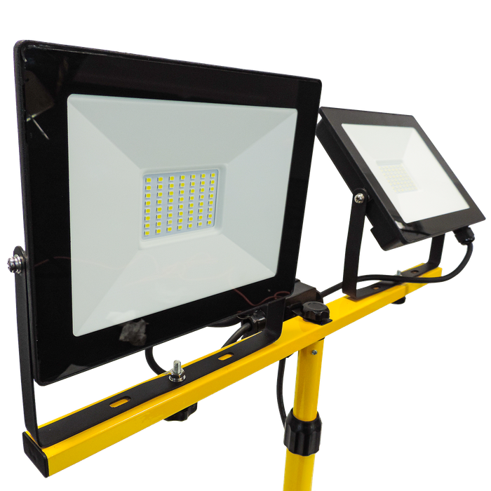 Constructed of durable aluminium, tempered glass, and heavy-duty plastic materials, they are built to withstand the rigours of the worksite. The adjustable pole height, ranging from 680mm to 1580mm, is secured by two locking nuts for stability. Supported by three 500mm long legs, these Worklights provide excellent stability even at full height. With an Ingress Protection rating of IP65, they offer protection against dust and water ingress, ensuring long-lasting performance in any work conditions. Illuminate your workspace with confidence using the ToolShed LED Worklights with Tripod 2x 50W, the ultimate lighting solution for your work needs.