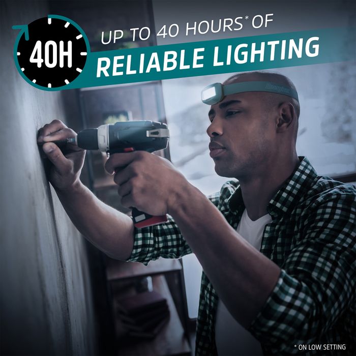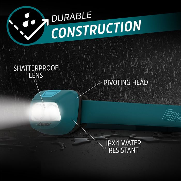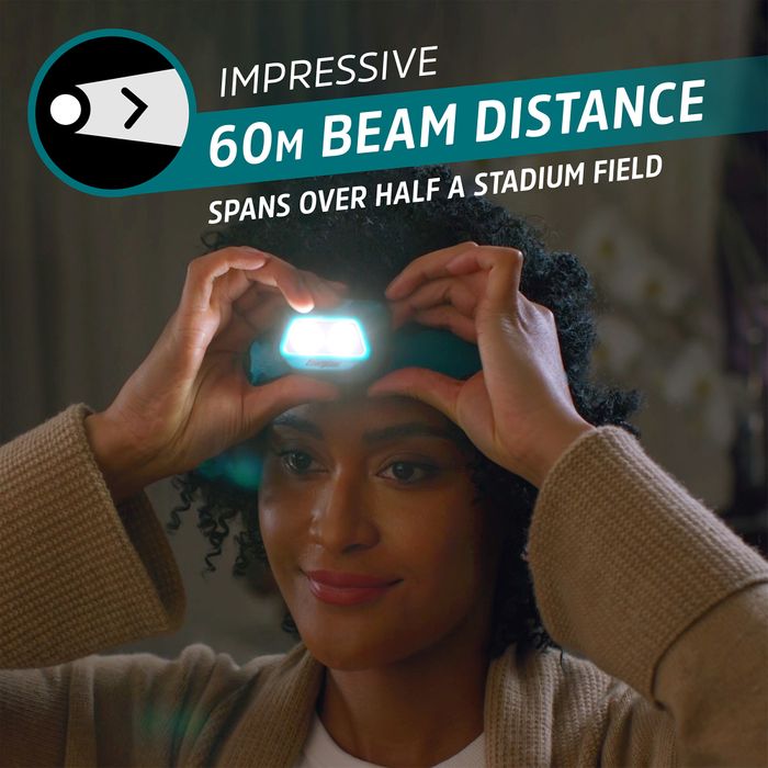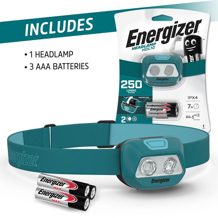Energizer HDL10 LED Headtorch offers bright LED light for powerful outdoor lighting. This Energizer headtorch offers good coverage for outdoor activities, such as hiking, cycling and camping, as well as home and work tasks. With 250 lumens, this Energizer flashlight has a powerful white LED light that lasts for up to 7 hours on high mode. High and low modes let you adjust the beam intensity with a push-button for easy switching. A pivoting head directs light exactly where you need it, and the lightweight design features an adjustable strap for comfortable wear. With a shatterproof lens and water-resistant body, this Energizer LED headtorch is dependable in outdoor weather and rugged environments. Trust in Energizer to deliver the powerful performance we promise –Energizer lights are tested and adhere to strict, reliable ANSI standards.
