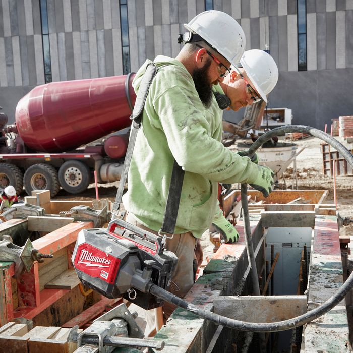 MX FUEL™, Milwaukee®'s new equipment system, goes beyond the limitations of petrol and corded units, utilising the industry's most advanced batteries, motors, and electronics to deliver the best experience for users. This is equipment, redefined. The MX FUEL™ Briefcase Concrete Vibrator provides consistent starts and reliable pours with maximum power for optimal consolidation. It delivers the power to push up to 64mm (2-1/2”) heads and 6.4m (21') shafts while eliminating extension cords, reducing tripping hazards on-site, and the ability to consolidate up to 223m2 / 34m3 on one MX FUEL™ REDLITHIUM™ XC406 battery pack, with a 4.2m shaft and 50mm head. The POWERSTATE™ Brushless Motor delivers the power to achieve 11,200 VPM for optimal consolidation, even in stiff concrete. The MX FUEL™ REDLITHIUM™ battery pack means no petrol headaches and requires no regular engine maintenance, produces less engine-related noise and vibration, and zero emissions when in use for a safer workspace, indoors or outdoors. It provides instant power without the need to run extension cords and generators, meaning means fewer tripping hazards on-site and less hassle for users. The included wireless remote gives users the ability to turn the machine on from up to 9m away for more freedom when using long shafts. REDLINK PLUS™ Intelligence ensures optimal performance and provides overload protection to protect the machine and battery during tough applications. The MX FUEL™ Briefcase Concrete Vibrator is compatible with all MILWAUKEE® MX FUEL™ REDLITHIUM™ batteries, giving users a hardworking and reliable power for equipment. It is ONE-KEY™ compatible, allowing users to track, manage and secure the machine.