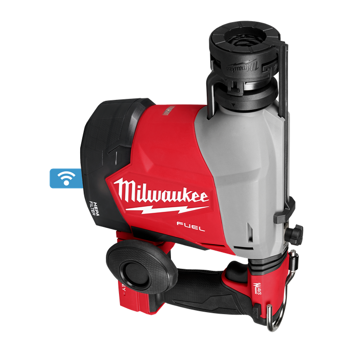 The M18 FUEL™ 16mm Overhead SDS Plus Rotary Hammer with Integrated Dust Extractor and ONE-KEY™ is a new-to-world solution optimised for ceiling drilling. This 2-in-1 design delivers improved ergonomics for overhead work compared to traditional rotary hammer and dust extractor attachments. This SDS Plus rotary hammer provides several new features that keep users productive and comfortable for repetitive drilling overhead. The built-in dust extractor creates a compact and lightweight tool with optimised balance for less fatigue. The newly designed side handle, now located near the rear handle, allows the operator to maintain better body posture throughout the application. The handle can be inserted on the left or right of the tool and can be collapsed for easy storage. AUTOSTOP™ Kickback protection offers enhanced safety for the user by preventing over-rotation in a bind-up. With ONE-KEY™, users can choose between default and low sensitivity settings for AUTOSTOP™ feature, in addition to tool tracking and management. The M18 FUEL™ 16mm Overhead SDS Plus Rotary Hammer with Integrated Dust Extractor and ONE-KEY™ provides simplified dust extraction and supreme ergonomics, while still delivering best-in class performance. The POWERSTATE™ Brushless motor provides fast drilling for small ceiling anchors and enough power to complete up to 16mm holes in concrete.