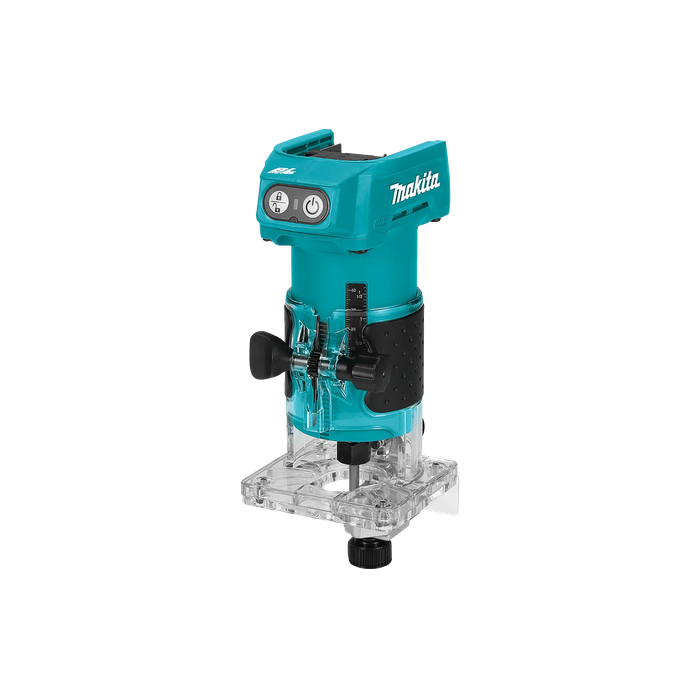 "Introducing the 18V LXT® Brushless Laminate Trimmer, a powerful tool that takes your precision cutting tasks to new heights. Engineered with advanced features and exceptional performance, this trimmer is the ultimate companion for professionals seeking efficiency and reliability.Safety and convenience are prioritized with the lock/unlock button, preventing unexpected start-ups and enhancing user control. The integrated power switch, reminiscent of the acclaimed DRT50, ensures seamless operation. The LED lamp serves as a visual indicator, illuminating solidly to indicate the tool's unlocked state and standby mode, providing clear feedback.The soft start function minimizes start-up shock, enabling smooth and controlled operation from the moment you activate the tool. The trimmer is also compatible with XPT (eXtreme Protection Technology), offering enhanced durability and protection against dust and water in demanding work environments.With a sturdy plastic housing and base, this trimmer achieves a balance between durability and lightweight manoeuvrability. The 6mm (1/4"") collet size provides versatility and compatibility with a wide range of cutting applications, making it an indispensable tool in your arsenal.Experience the performance, precision, and reliability of the 18V LXT® Brushless Laminate Trimmer. Designed for professionals, it empowers you to achieve outstanding results in your cutting tasks. Elevate your craft with a tool that combines power, efficiency, and advanced features, setting a new standard in the industry."