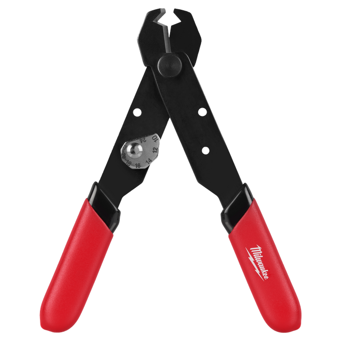 MILWAUKEE® Adjustable Compact Wire Stripper features an easy adjustment dial that rotates to set the tool to the desired wire size. The V-Notch wire stripper cleanly strips 0.50 – 6mm² (10-22 AWG) solid and 0.25 – 4mm² (12-24 AWG) stranded wire. This lightweight tool also has a built-in cutter and slots for looping or bending wires and the high-contrast markings help to easily identify which wire size you're using.