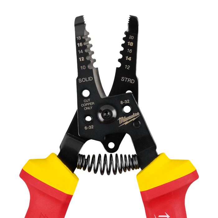 MILWAUKEE® 1000V Insulated Wire Stripper is designed for accurate wire stripping. The flame retardant 1000V layer of insulation on the handles provides maximum protection. Our wire stripper features a curved blade design that allows you to perform clean cuts through larger solid & stranded wire sizes. Capable of preforming cuts between 0.50 - 6.0mm² (10-20 AWG) and a built-in bolt cutter with the capacity to cut #6 and #8 bolts. Our MILWAUKEE® 1000V Insulated Wire Strippe are UL classified and are certified to IEC 60900 and ASTM F1505 standards for insulated hand tools.