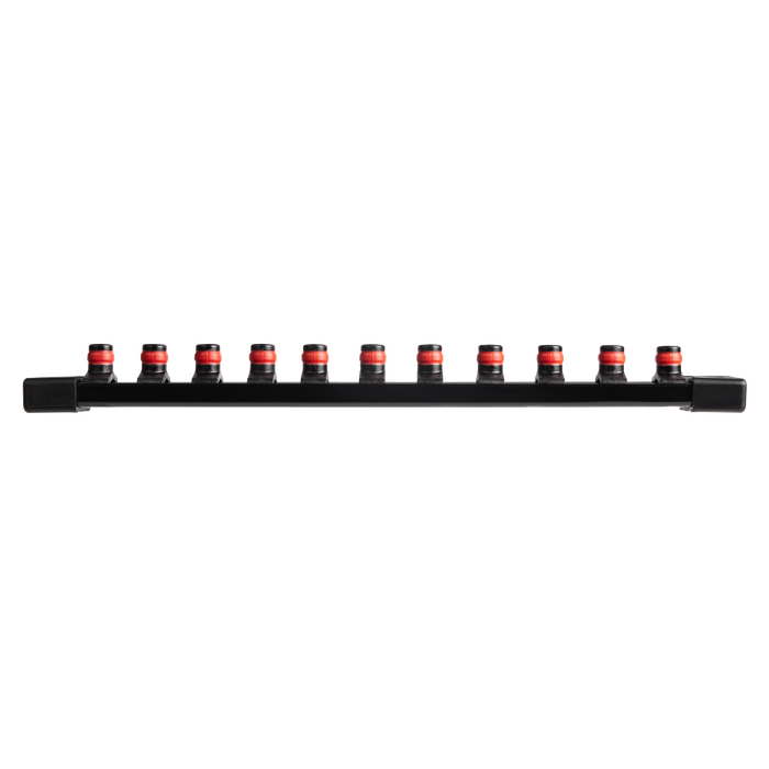 The Milwaukee 11PC 3/8" Drive Metric Hex Bit Socket Set with FOUR FLAT™ sides is designed from the ground up to be part of the most versatile socket family. Milwaukee bit sockets feature an innovative design with four parallel flat sides, which deter rolling and are wrench-compatible. This also creates a slim profile to provide the best access in tight spaces. The one-piece socket design offers improved durability compared to two-piece designs by eliminating the risk of the bit separating from the socket base. This set includes a storage rail for better organisation. Laser engraved size markings provide easy identification and chrome plating offers rust and corrosion protection.