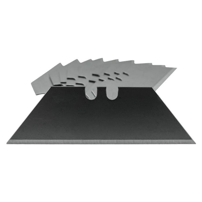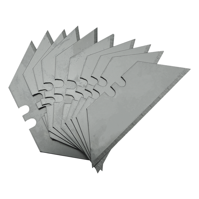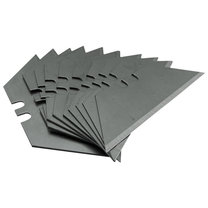 Compatible with Stanley, Irwin, and most other knife brands, these high-quality Carbon Steel trapezoid blades are designed for durability. Each blade measures 60mm long by 20mm wide and features dual cutting points, enhancing their longevity. Housed in a safe, convenient travel container, these durable blades are built for longevity and toughness, reducing downtime and boosting productivity by keeping spares readily available.