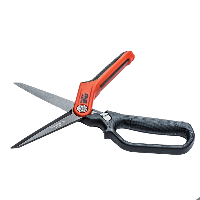Crescent Wiss® Spring-Loaded Tradesman Shears feature premium steel blades that extend through the handles for twice the strength and ten times the cutting power of standard shears. Their titanium blade coating is three times harder than steel for extra durability and longer edge life. A serrated bottom blade grips material for better control and cleaner cuts, while spring-loaded design and optimized handle contact points improve comfort and reduce fatigue. A quick-release ergonomic latch that locks the tool closed for storage and soft-grip TPR handles are added safety and comfort features that make Crescent Wiss® Spring-Loaded Tradesman Shears best in class performers.