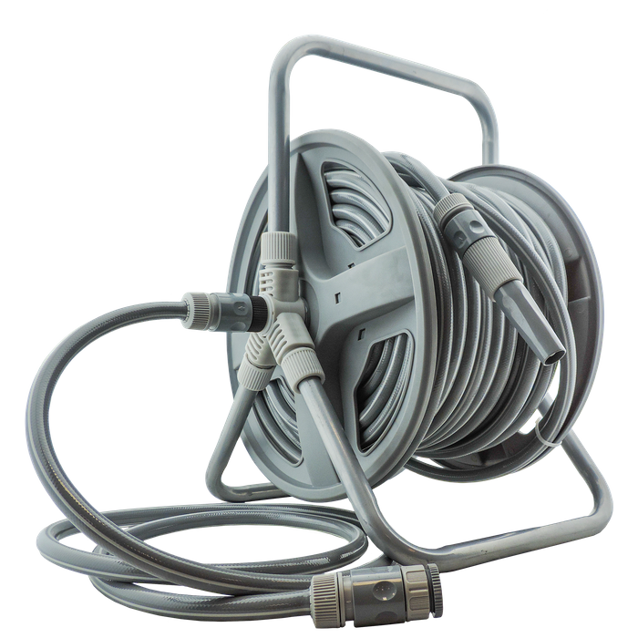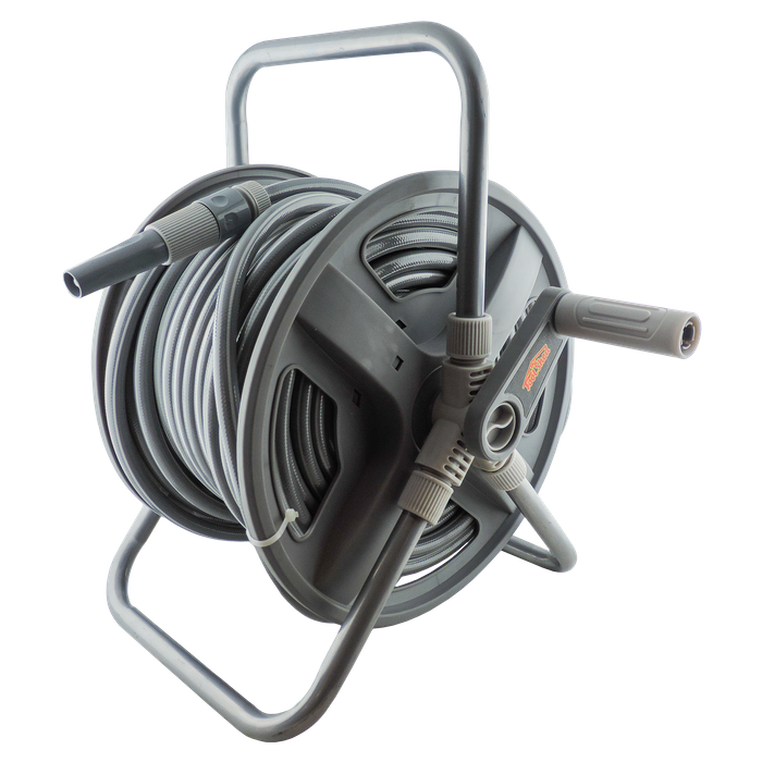 - Holds up to 40m of hose (included).