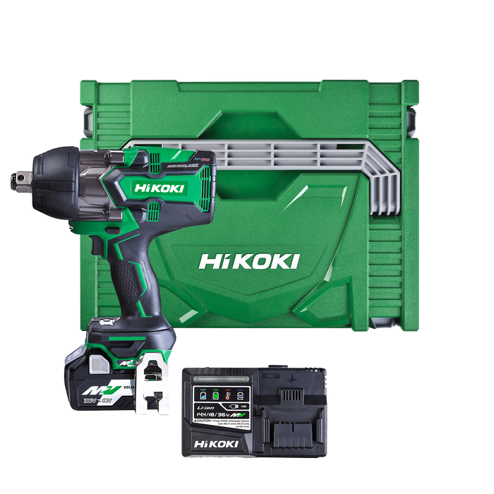 No need for compressors, generators, cords, and air hoses! HiKOKI’s MULTI VOLT™ 36V 3/4" High Torque Brushless Impact Wrench delivers 1,800Nm of Nut-busting Torque and features like 4-stage tightening mode selector, Variable Speed Control and IP56 Dust and Water Protection. Includes 1x 1080W MULTI VOLT™ Battery and Rapid Smart Charger.