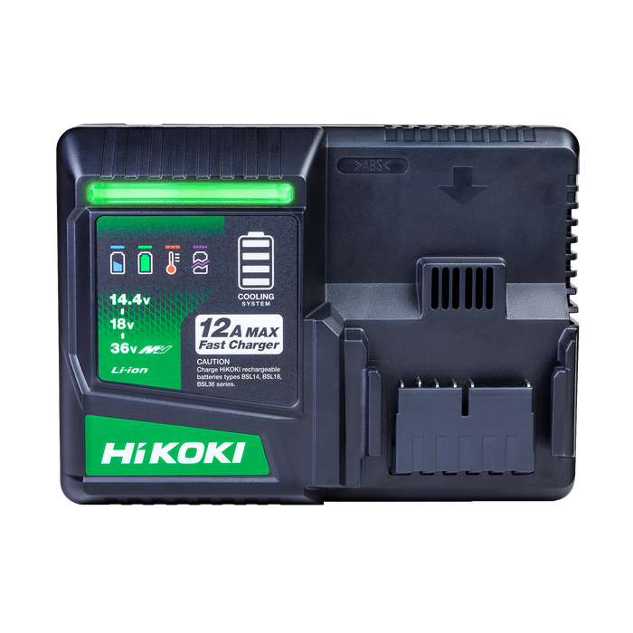 HiKOKI Unleash the new 12Amp Max Fast Charger delivering unparalleled lightening quick charging times with extra safety benefits. UC36YSL2 features the latest in cutting-edge colling systems and 3-way protection including overcharging and overheating technology.