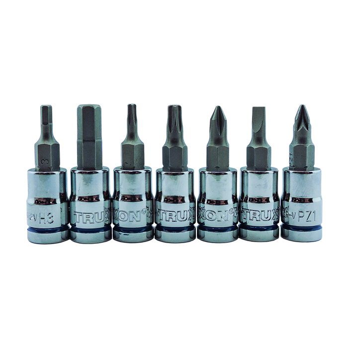 1/4in Bit Sockets 25mm: H3, H4, H5, H6, H7, H8, T10, T15, T20, T25, T30, T40, PH1, PH2, PH3, SL4, SL5.5, SL7, PZ1, PZ2, PZ3
