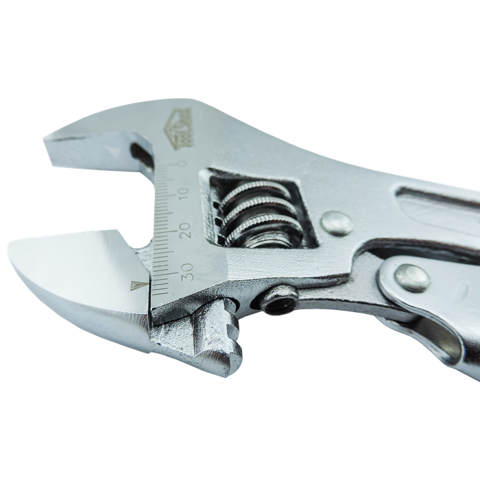 The ToolShed Locking Adjustable Wrench 250mm offers superior performance and reliability for a wide range of tasks. Its innovative locking mechanism ensures a secure grip, preventing the rounding off of fasteners and providing enhanced stability during use. Crafted from heat-treated drop-forged chrome vanadium steel, this wrench is built for extra strength and long-lasting corrosion resistance. The laser-etched millimetre measurements on the wrench provide clear and precise size adjustments, while the quick-release lever allows for easy unlocking, making it a versatile and user-friendly tool for any professional or DIY enthusiast.