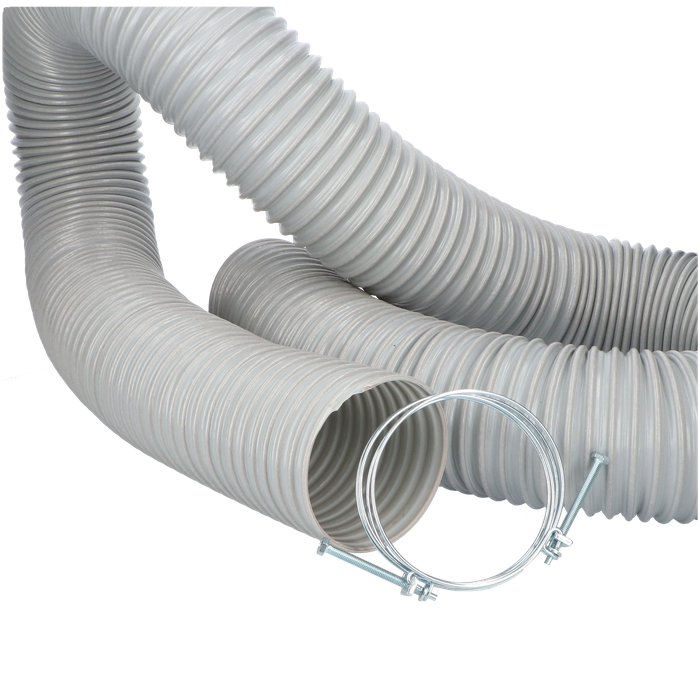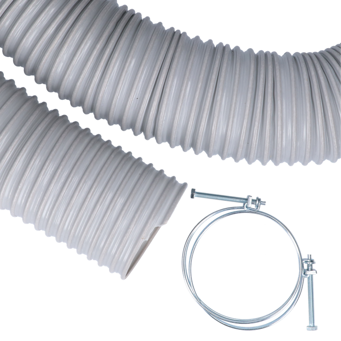This handy pack contains 2.5M of flexible very durable 100mm in diameter extraction hose which is designed not to collapse under pressure along with 2 x heavy duty 100mm clamps to connect to the machine and the extractor.