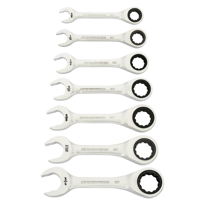 GEARWRENCH Stubby Ratcheting Combination Spanner 90T SAE 7pc