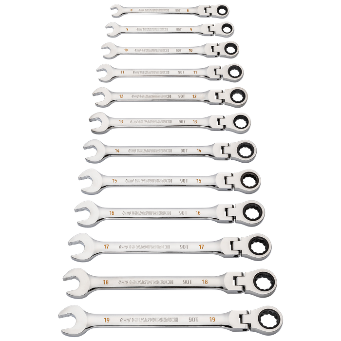 - GEARWRENCH Combination Ratcheting Spanner Flex Head Metric 12pc Set