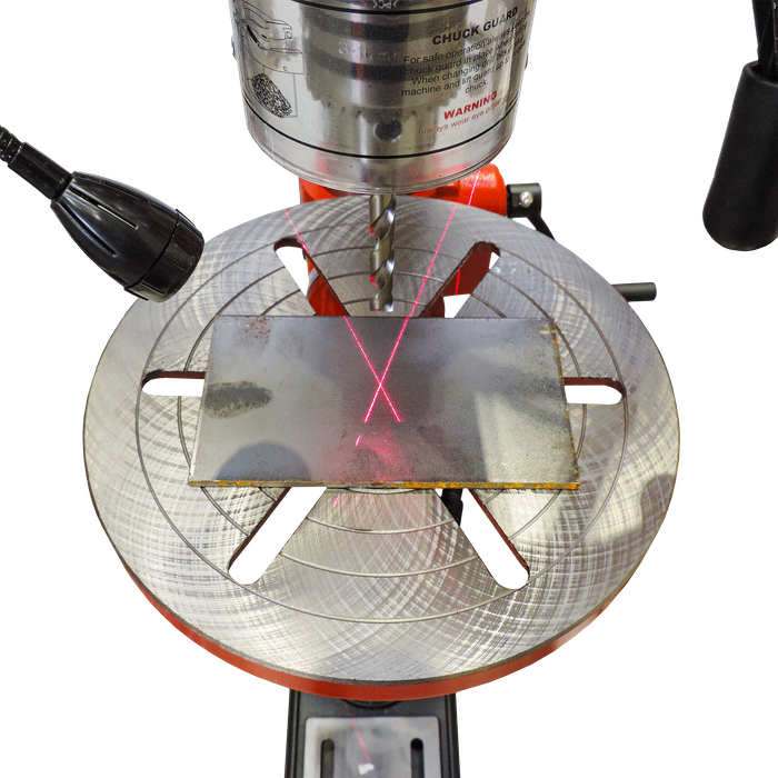 For precise alignment and accuracy, the drill press includes a laser line guidance system that projects X and Y axis lines onto your workpiece, ensuring precise alignment and drilling accuracy. Speed adjustments are made easy with a quick reference chart and a convenient belt tension release knob. Constructed from heavy-duty steel and cast iron, the ToolShed Drill Press is built for durability and long-lasting performance.