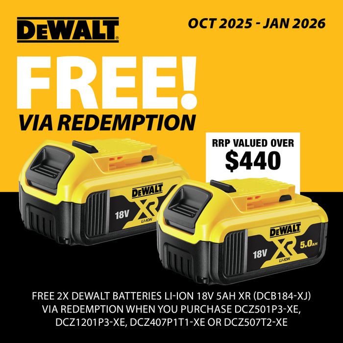 Supplied with 1x DCB184-XE 5Ah Battery, 1x DCB546-XE FLEXVOLT® 6Ah Battery, 1x DCB118-XE 8A Charger and Soft carry bag