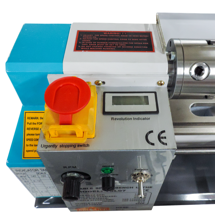 Whether you're crafting small parts, cutting threads, or working on detailed projects, this lathe offers the accuracy and control you need to achieve professional results. Equipped with a two-speed gearbox and a variable-speed motor, the lathe provides high torque across all speed ranges, with high-speed settings ranging from 100 to 2500 RPM and low gear speeds of 100 to 1250 RPM.