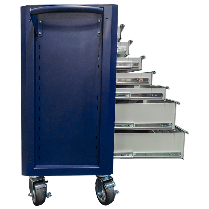 Built from heavy-duty steel with a durable powder-coated finish, this cabinet delivers superior strength and long-lasting reliability. Its seven self-closing drawers, equipped with secure latch mechanisms, provide smooth and dependable operation, while pre-cut premium PVC liners protect your tools and keep them orderly.