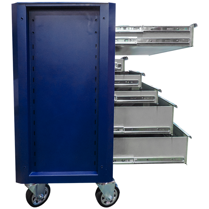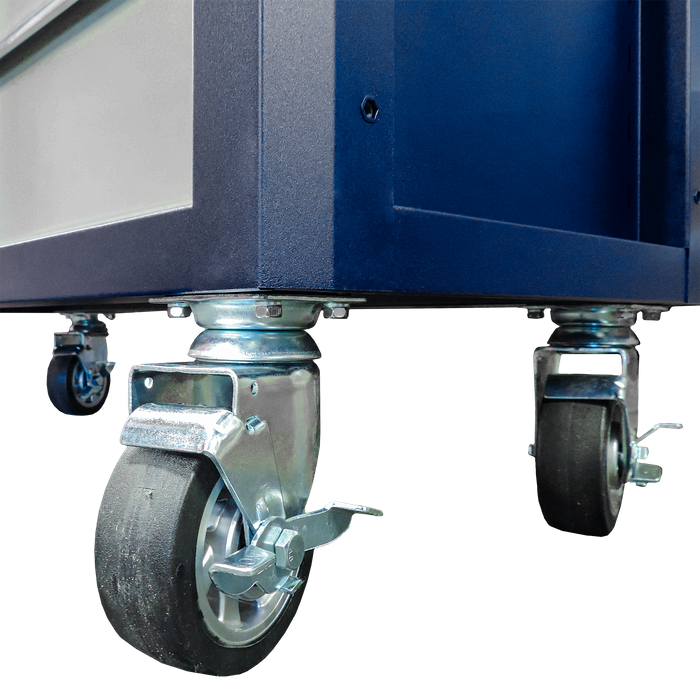 Four industrial-grade lockable castor wheels (127 x 51mm) provide excellent stability and effortless manoeuvrability, making it easy to transport the cabinet wherever it's needed. With a combination of smaller and longer drawers in varying sizes, this roller cabinet offers tailored storage for tools of all shapes and sizes, from small accessories to bulky equipment