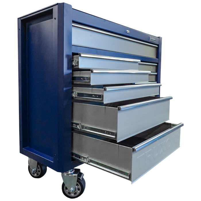The TRUXON® 11-Drawer Roller Cabinet is a premium storage solution designed for professionals who require durability, organisation, and mobility. Constructed from heavy-duty steel with a tough powder-coated finish, this cabinet is built to endure demanding work environments. The 11 self-closing drawers feature secure latch mechanisms for reliable and smooth operation, while pre-cut premium PVC liners protect tools and keep them neatly arranged.