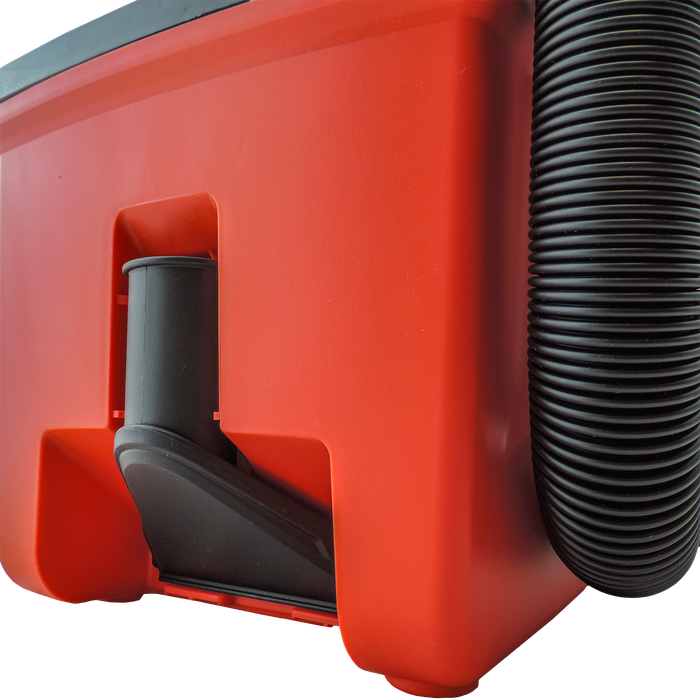 Practical and portable, the vacuum features a convenient carry handle and a 3.2-metre hose that stores neatly on built-in hooks for tidy packing. An integrated attachment storage area keeps all your tools easily accessible.