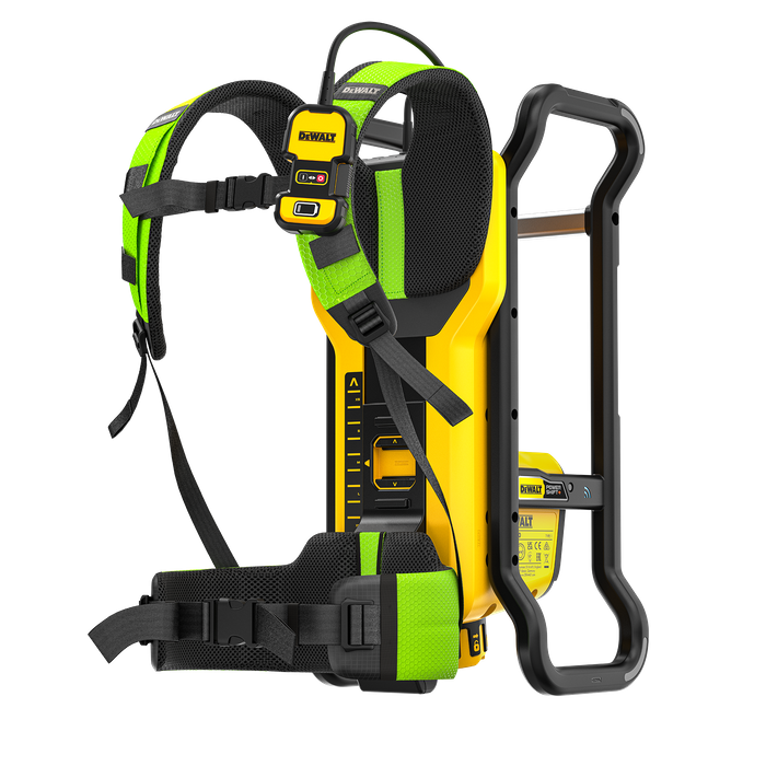 TAKE CONTROL with DEWALT POWERSHIFT. The Cordless Equipment System engineered for epic performance and runtime. Don’t wait to start, stop to refuel, or be limited by petrol a second longer. This battery powered backpack vibrator delivers petrol equivalent performance with zero emissions. The one-handed, self ejecting hose fitment is tool free to make use with gloves easy and delivers protection against dirt ingress. The high frequency hoses (sold seperately) are engineered with the motor in the head to reduce the diameter which also helps to deliver increased runtime, less vibration, enhanced durability and no maintenance. The fully adjustable harness offers enhanced ergonmics and has shoulder strap mounted controls with low battery indicator. The built in roll cage offers varous grab positions and helps to protect the battery for enhanced durability on the toughest jobsites.