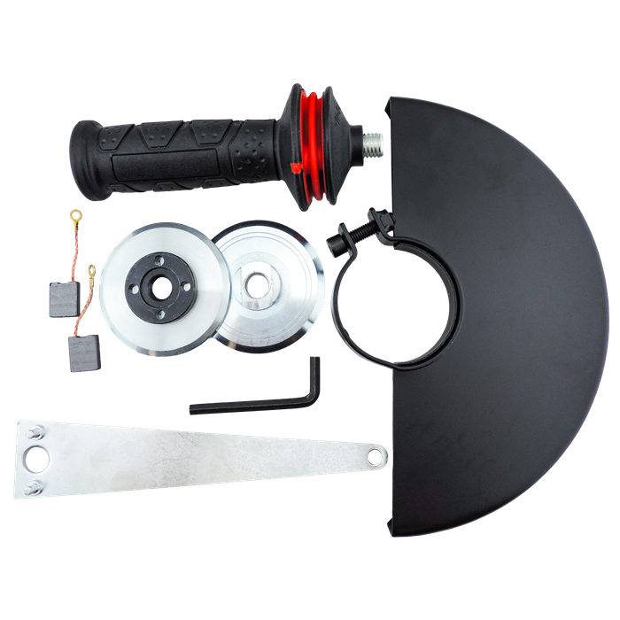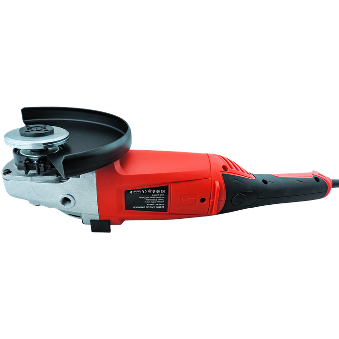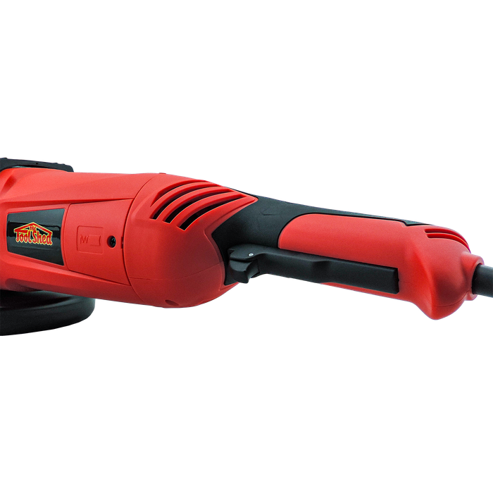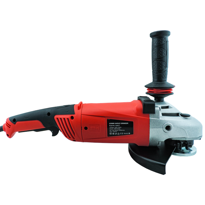 The ToolShed 230mm Angle Grinder (2300W) is a powerful, industrial-grade tool designed for heavy-duty cutting and grinding. Featuring a high-performance 2300W motor, it delivers exceptional power for demanding applications. The rotatable rear handle offers seven positioning options, while the multi-position, anti-vibration side handle enhances control and comfort. A soft start function reduces startup torque for smoother operation, and the two-stage safety trigger helps prevent accidental activation. The included inner and outer flange system ensures secure disc mounting, providing stability and optimal performance during use. With a comfortable rubber grip, this grinder ensures ease of use, making it a reliable choice for professionals and tradies.