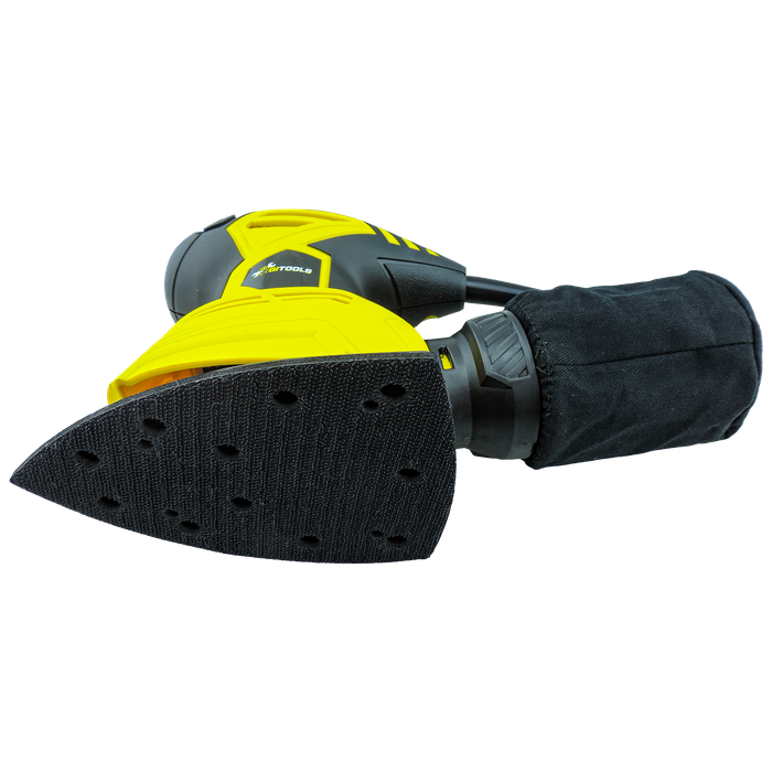 - Triangular base plate for detail sanding edges, corners, and surfaces.