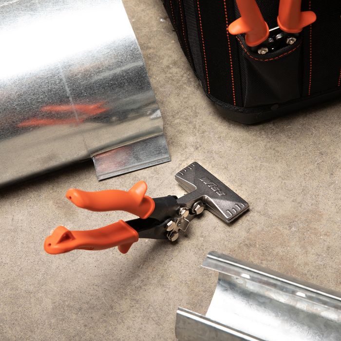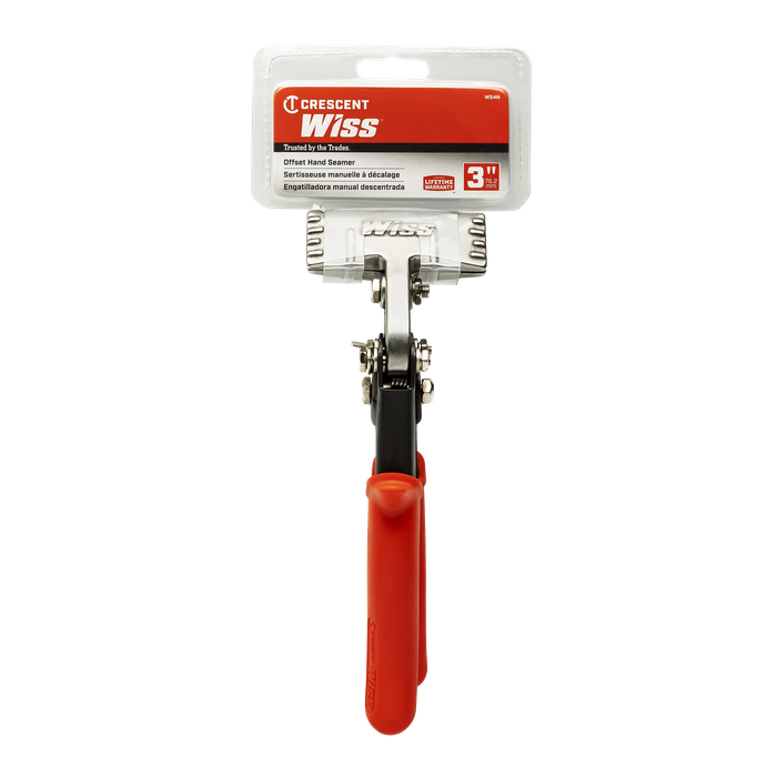 The Crescent Wiss® Offset Hand Seamer is a powerful tool for bending or flattening sheet metal by hand. It utilizes an optimal handle span to deliver maximum power from an ergonomic operating range, and features non-slip cushion grips for superior comfort and control.