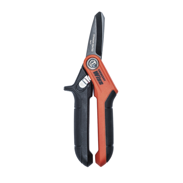Crescent Wiss® Utility Shears feature premium steel blades, precision-engineered with knife-like edges to deliver ten times the cutting power of standard shears. Their titanium blade coating is three times harder than steel for extra durability and longer edge life and their compact design is made for easy portability. A serrated bottom blade grips material for better control and cleaner cuts, while spring loaded design and optimized handle contact points improve comfort and reduce fatigue. A quick release ergonomic latch that locks the shears closed for transport and soft-grip TPR handles are added safety and comfort features. Crescent Wiss® Utility Shears are the perfect choice when you need exceptional cutting power in a compact tool.