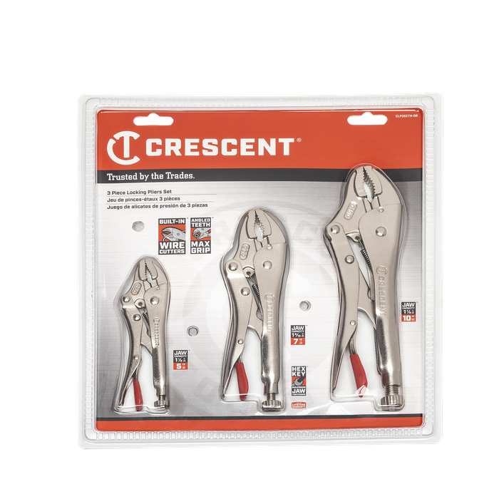 - Crescent Curved Jaw Locking Plier With Wire Cutter Set 3pc